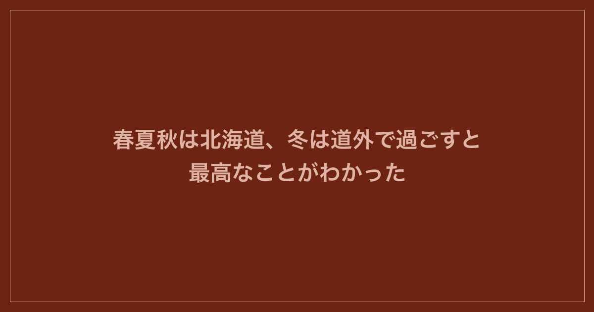 春夏秋は北海道、冬は道外で過ごすと最高なことがわかった