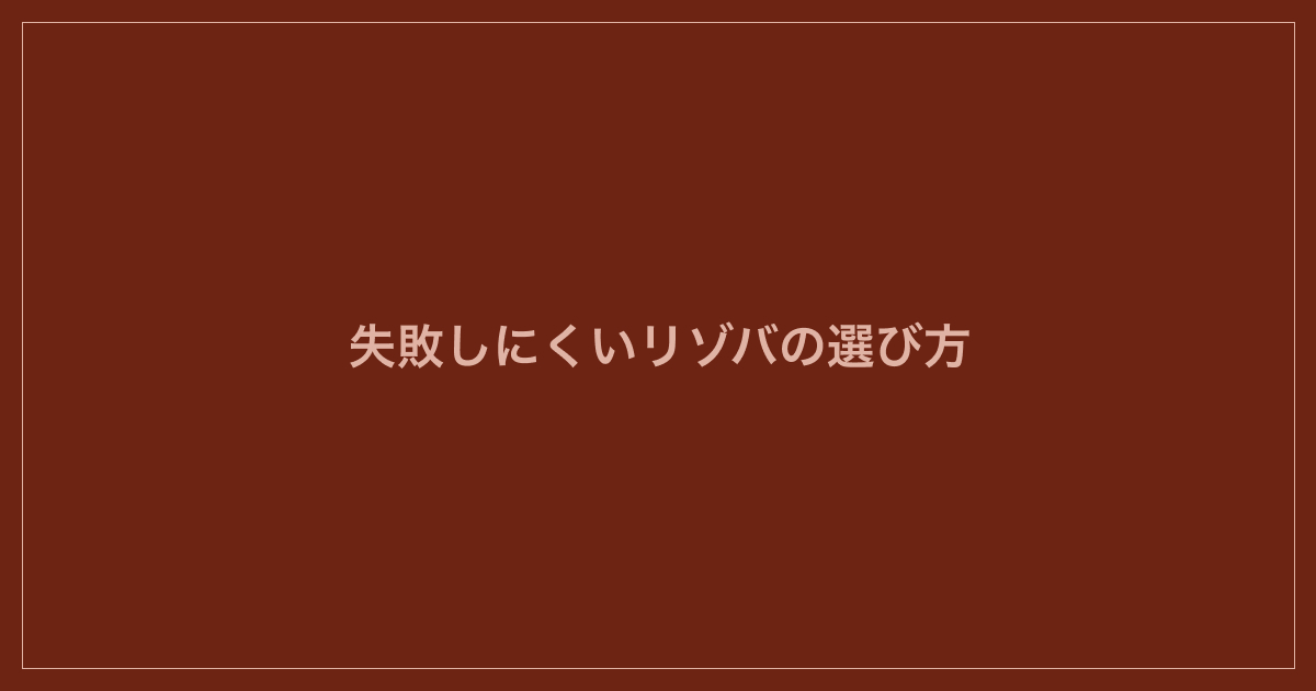 さらに読むということで、自分なりに思った失敗しにくいリゾバの選び方を書いていきます。