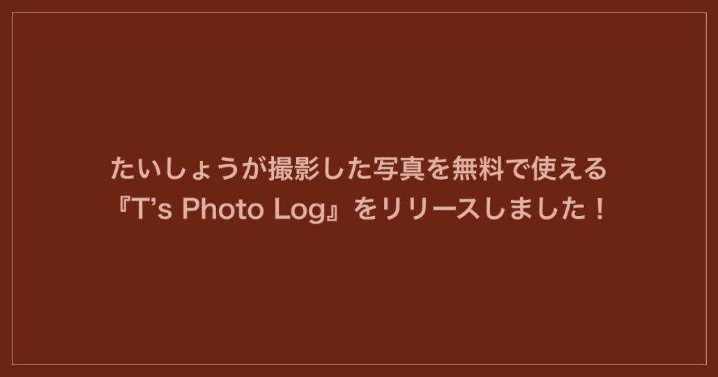 たいしょうが撮影した写真を無料で使える『T’s Photo Log』をリリースしました!