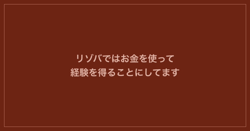 リゾバではお金を使って経験を得ることにしてます